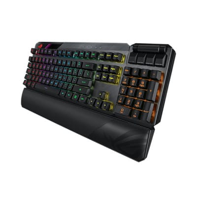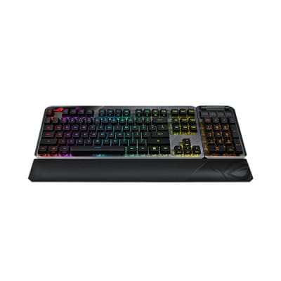 Switch: Blue, Connectivity: USB 2.0, RF 2.4GHz, Size (Full/TKL): 100%, AURA Sync: Yes, Anti-Ghosting: 100% Anti-Ghosting, Macro Keys: All Keys Programmable, On-the-Fly Recording Support, USB Report rate: 1000 Hz, USB Pass through: Yes, Full function. Profile Hot Keys: Fn + 1 / 2 / 3 / 4 / 5 / 6 (6 is default), Lighting Effects Hot Keys: Fn + Right or Fn + Left, Brightness Setting Hot Keys: Fn + Up: Brightness up, Fn + Down: Brightness down, Macro Hot Keys: On-the-Fly Macro Recording: Step 1: Fn + L-ALT to start recording, Step 2: Fn + L-ALT to end recording, Step 3: Assign new macro key. Media Hot Keys: Play/Pause, Stop, Backward, Forward, Volume Up, Volume Down, Mute/Unmute. Software: Armoury Crate