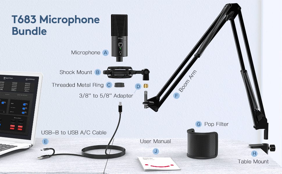 The FIFINE T683 USB Microphone Bundle is designed to elevate your content creation, offering a studio-grade audio experience with an array of essential accessories. Whether you’re a streamer, podcaster, musician, or gamer, this bundle provides everything you need for professional-quality recordings.