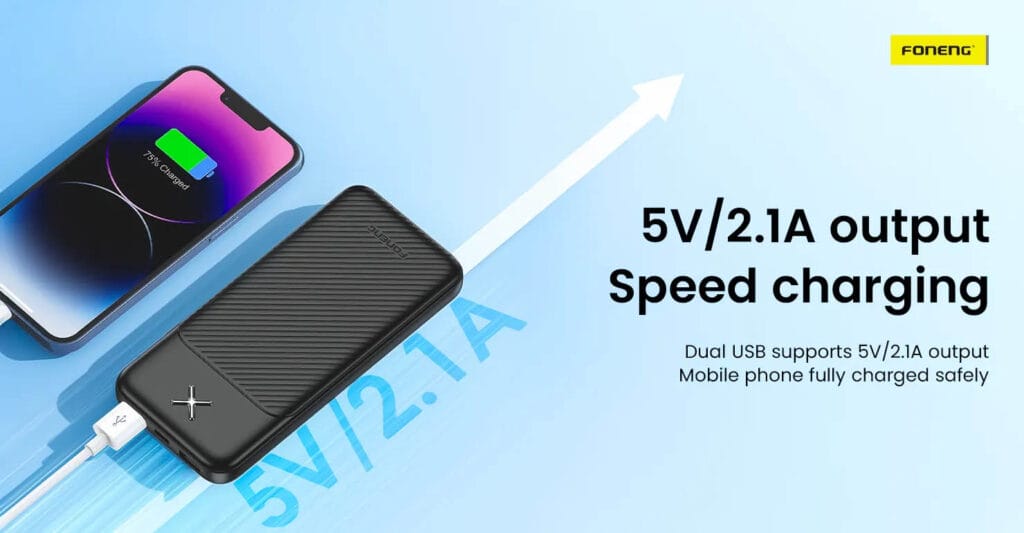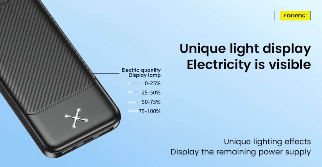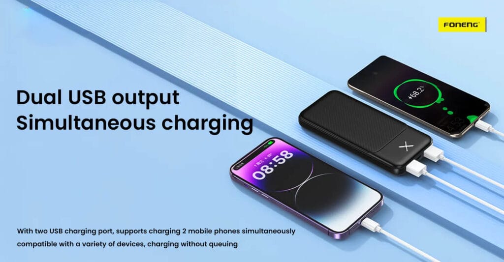 The FONENG PX109 10000mAh Portable Power Bank is a reliable and compact charging solution for your everyday needs. Equipped with a 10000mAh capacity, it provides multiple charges for your devices while remaining lightweight and easy to carry. Featuring dual USB outputs, the PX109 allows you to charge two devices simultaneously, making it convenient for users with multiple gadgets. With its durable design, efficient charging, and built-in safety protections, the PX109 is an excellent choice for travel, work, or daily use.