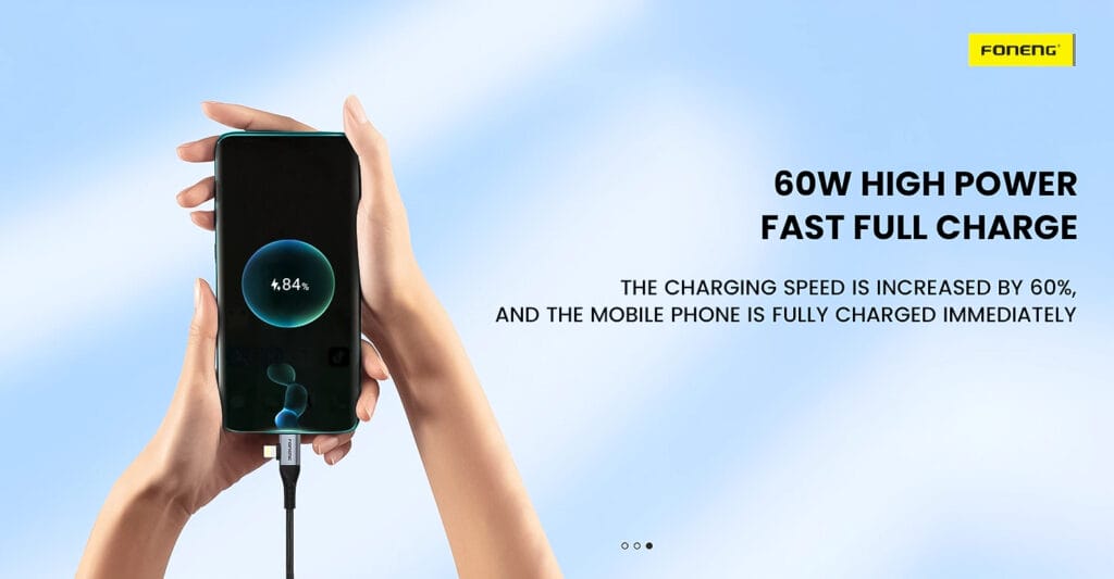 The FONENG X92 Braided Type-C Cable delivers up to 60W fast charging with exceptional durability. Made with high-quality nylon braided material, it offers strong protection against wear, bending, and tangling — making it perfect for daily use.