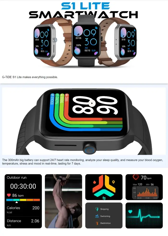 - Model: G-TiDE S1 Lite Bluetooth Calling Smartwatch