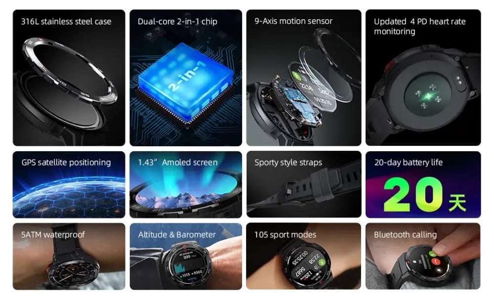 - Ultra-Long Battery Life – Up to 20 days of use on a single charge.