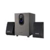 Bass reflex tunnel on frontal panel for deeper bass. Woofer driver outside the bottom of subwoofer cabinet amplifies the bass effects. Support Bluetooth and 3.5mm stereo inputs.