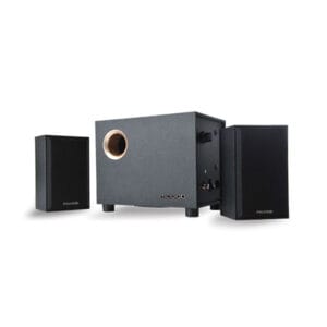 2.1 speaker system in a mini vintage style. Bluetooth 5.0 enables free music streaming from other devices. Wooden cabinets for perfect acoustic performance and crystal-clear music experience.