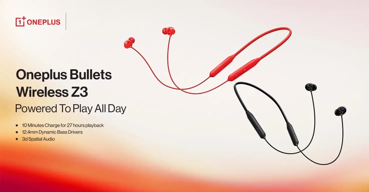 The OnePlus Bullets Wireless Z3 Neckband combines premium sound quality, fast charging, and comfortable design — making it the perfect companion for music, work, and workouts. Featuring 12.4mm dynamic bass drivers, it delivers deep, punchy bass and crystal-clear vocals for an immersive listening experience.