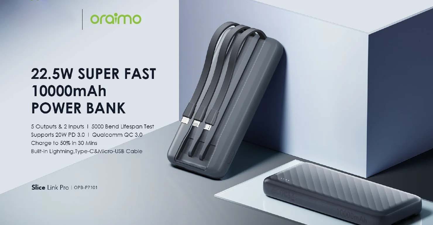 The Oraimo Slice Link Pro 10000mAh 22.5W Power Bank (OPB-P7101) is a slim, stylish, and powerful portable charger designed for fast and efficient charging. With its 22.5W super-fast charging output, it can quickly power up your smartphone, earbuds, or other devices in no time. The 10000mAh capacity ensures multiple recharges for most phones, making it perfect for travel, work, or daily use. Equipped with dual input (Type-C & Micro-USB) and dual output ports, you can charge multiple devices simultaneously. Built with advanced safety protections and a compact slice-like design, it offers both performance and portability in one.
