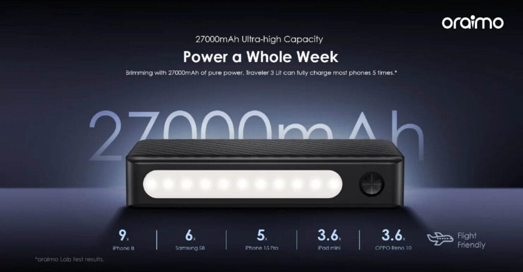 - Ultra-high 27000mAh capacity – perfect for long trips and heavy users.