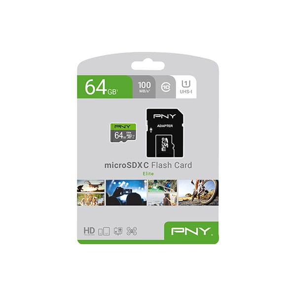 The PNY Elite Class 10 U1 64GB microSD Memory Card offers reliable speed, durability, and performance for your everyday digital needs. Ideal for smartphones, tablets, action cameras, drones, and more, this memory card is built to handle Full HD video, photo storage, and app performance with ease.