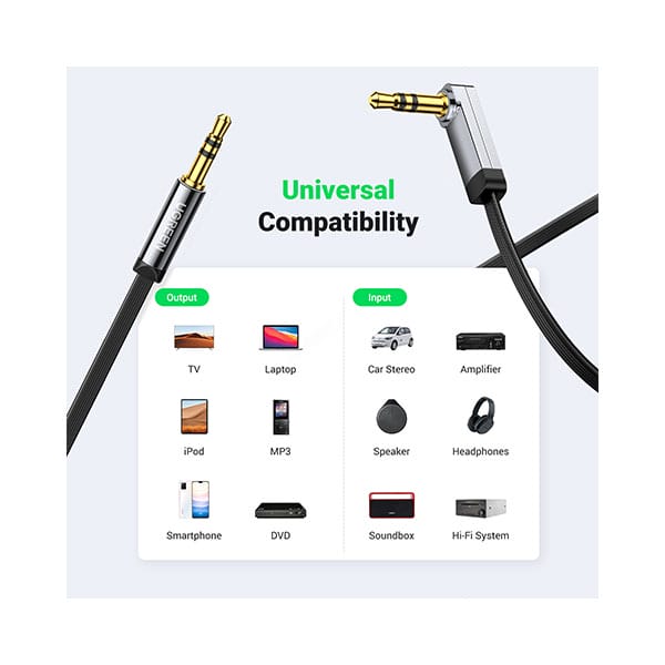 The UGREEN AV119 (10729) 3.5mm 90° Right Angle Extension Cable is designed to give you extra length and flexibility for your audio devices. With a 5-meter extended cable, it allows you to comfortably connect headphones, speakers, car stereo systems, or other 3.5mm audio devices without being restricted by distance. The 90-degree right-angle connector reduces strain on the cable and prevents accidental unplugging, making it ideal for tight spaces and portable use. Built with gold-plated connectors and high-quality copper wiring, this extension cable delivers clear, lossless sound with minimal interference.