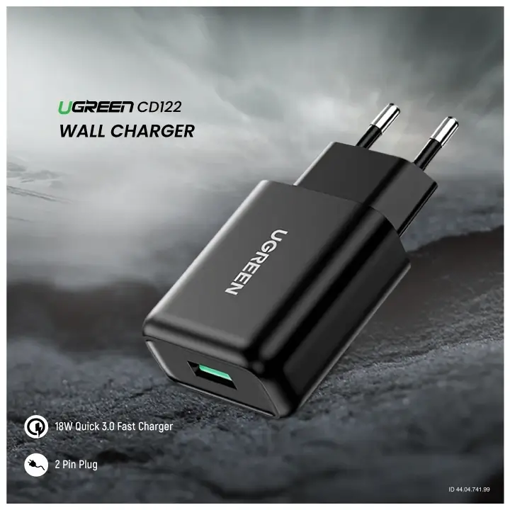 The UGREEN CD122 (70273) QC3.0 USB Fast Charger (EU Plug) is a compact and reliable wall charger that supports Qualcomm Quick Charge 3.0 technology, allowing your devices to charge up to 4x faster than conventional chargers. With its 18W max output, it is perfect for quickly powering up smartphones, tablets, and other QC-compatible gadgets. The charger also includes multi-protection safety features to guard against overvoltage, overcurrent, overheating, and short circuits.