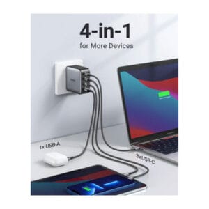 - GaN (Gallium Nitride) technology for compact size and efficient performance