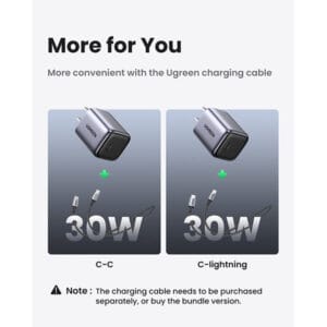 The UGREEN CD319 (90901) 30W GaN Fast Charger is a compact and efficient charger designed for fast charging of smartphones, tablets, and USB-C devices. Utilizing advanced GaN (Gallium Nitride) technology, it provides high power output in a smaller, cooler, and more energy-efficient form. With built-in smart protection features, it safeguards your devices against overcharging, overheating, and short circuits, making it perfect for home, office, or travel use.