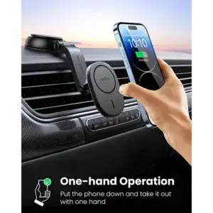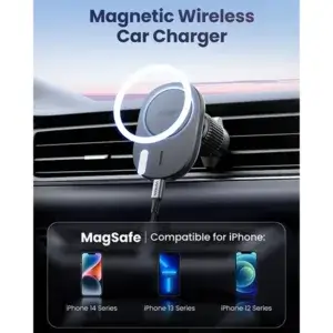 The UGREEN CD345 (15120) 15W Magnetic Car Wireless Charger is a reliable and convenient charging solution for MagSafe-compatible iPhones and other Qi-enabled devices while driving. Its strong magnetic alignment ensures a secure hold, preventing slips or drops during travel. With fast 15W wireless charging, it keeps your devices powered without the hassle of cables. The compact, adjustable design fits most car air vents for easy installation and daily use.