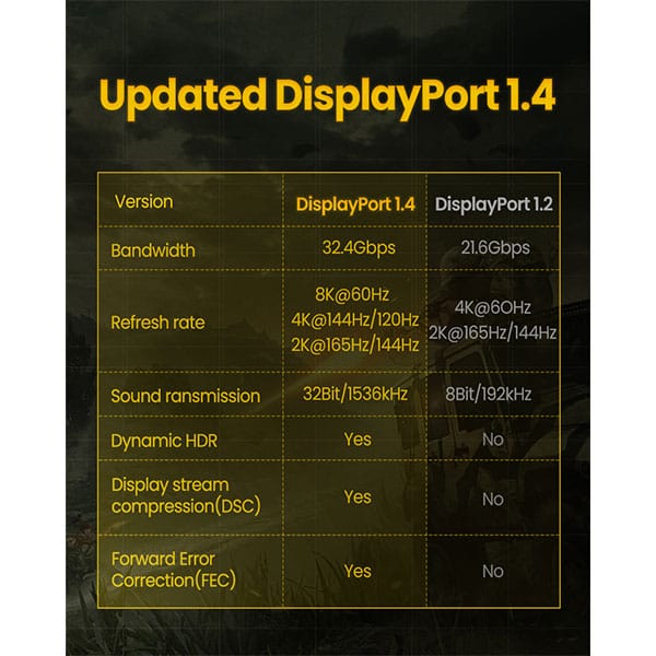 UGREEN DP114 (80391) DP 1.4 Male to Male Cable – 1.5M