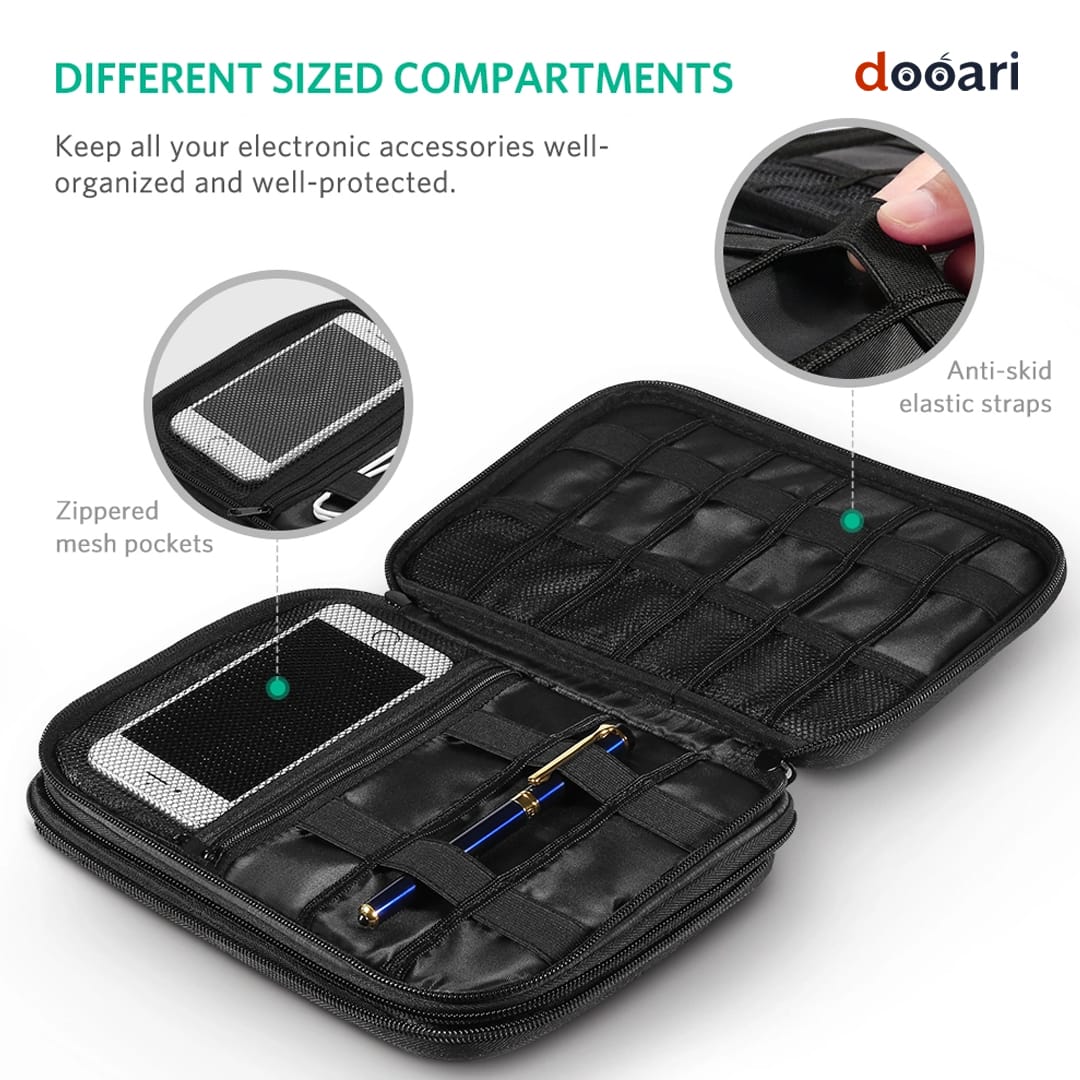 - Perfect for USB cables, charging adapters, power banks, earphones, SD cards, flash drives, and small electronics