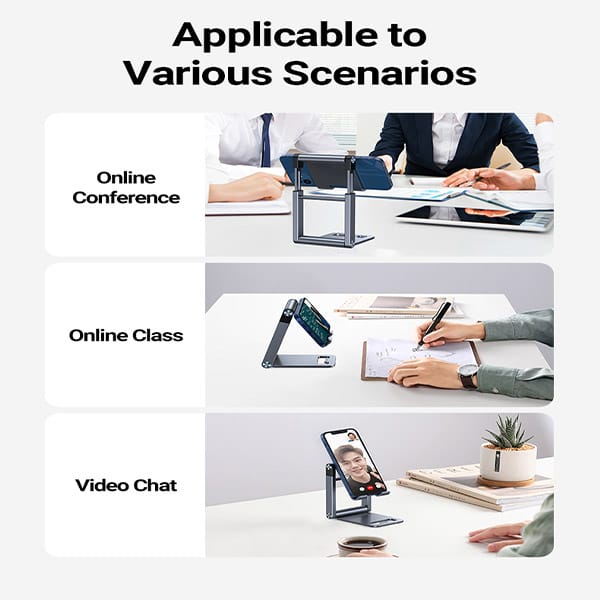 The UGREEN LP263 (50324) Metallic Stand is a premium desktop stand designed to securely hold smartphones, tablets, and other devices. Its sturdy metallic construction ensures durability while maintaining a sleek and modern look. The stand is ideal for video calls, watching movies, gaming, or working at your desk, providing a stable and adjustable viewing angle for comfortable usage.