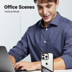 The UGREEN LP636 (90926) Kickstand Protective Case is specially designed for the iPhone 14 Pro Max, combining rugged protection with a practical built-in kickstand. Its slim yet durable construction ensures your phone stays protected against accidental drops, shocks, and scratches while providing a comfortable grip. The adjustable kickstand supports both portrait and landscape modes, making it ideal for hands-free video watching, gaming, or video calls.
