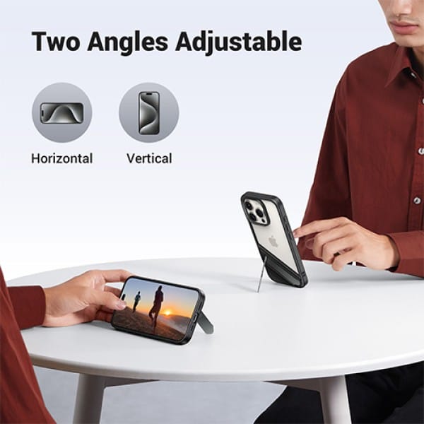 The UGREEN LP740 (25407) Kickstand Protective Case is a premium-designed case made exclusively for the iPhone 15 Pro Max. Featuring a built-in kickstand, it allows hands-free viewing in both portrait and landscape orientations. The case provides military-grade protection with reinforced corners, scratch-resistant materials, and a snug fit to keep your device safe while maintaining a sleek and modern look.