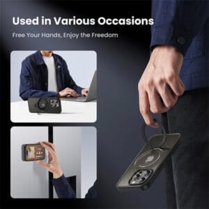 The UGREEN LP763 Protective Case is designed to offer maximum protection and convenience for your iPhone 15 Pro. Made with durable materials, it safeguards your device from scratches, drops, and daily wear. The integrated kickstand enables hands-free viewing, and the magnetic back ensures seamless compatibility with MagSafe chargers and accessories. Sleek, lightweight, and functional, it’s perfect for daily use.