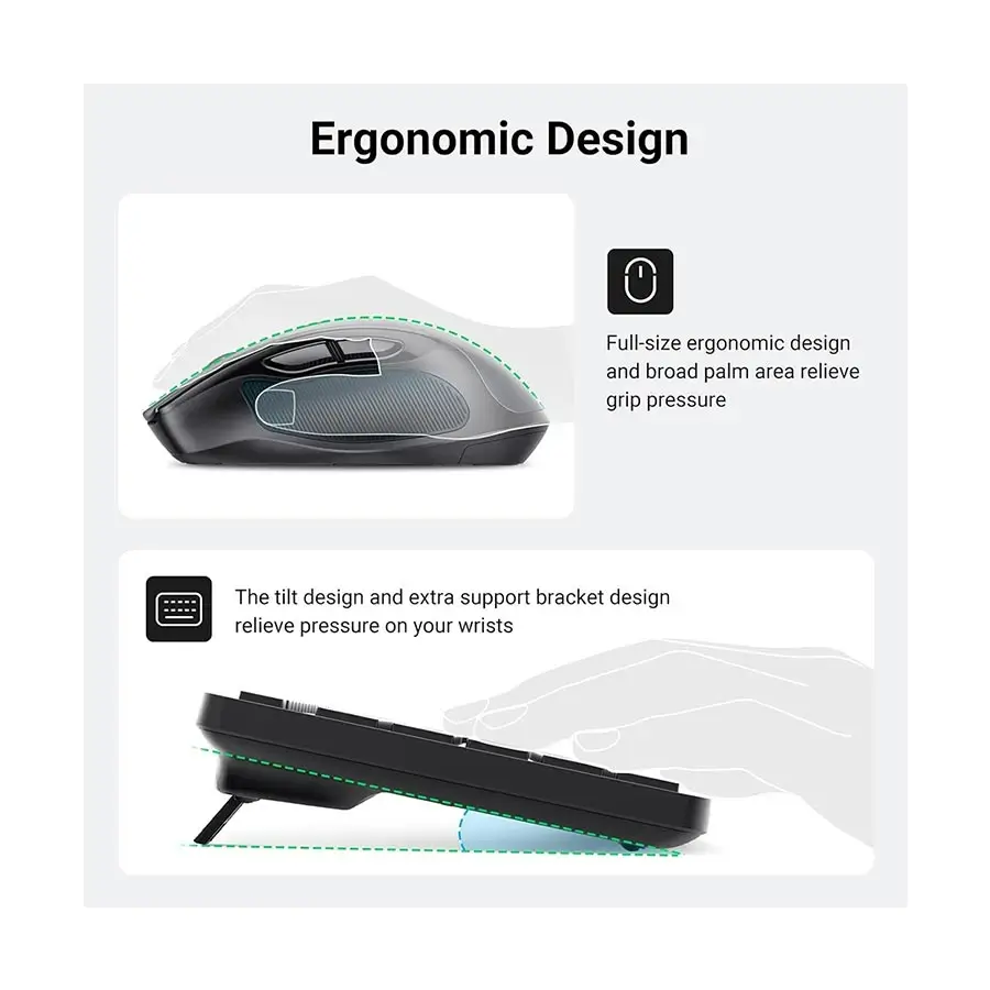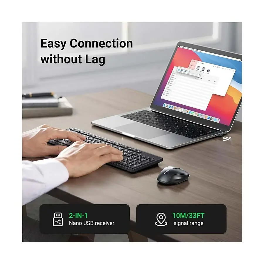 Stable wireless connection Ergonomic and full-sized keyboard plug-and-play