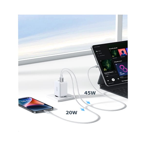 65W Total Output – High-speed charging for laptops, tablets, and smartphones
