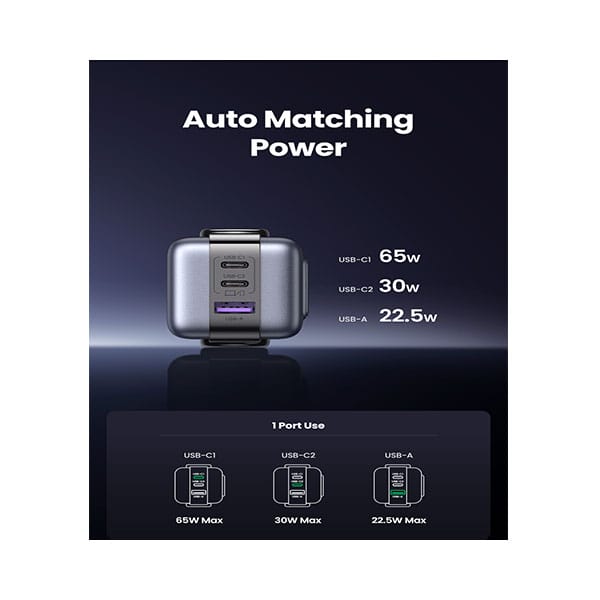 • 65W Total Output: High-speed charging for multiple devices simultaneously