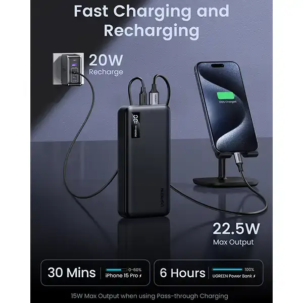 The UGREEN PB312 (25683) 20000mAh 20W Fast Charging Power Bank is a high-capacity portable charger designed for fast, reliable power on the go. With its massive 20,000mAh battery, you can charge your smartphone, tablet, or other USB-powered devices multiple times.