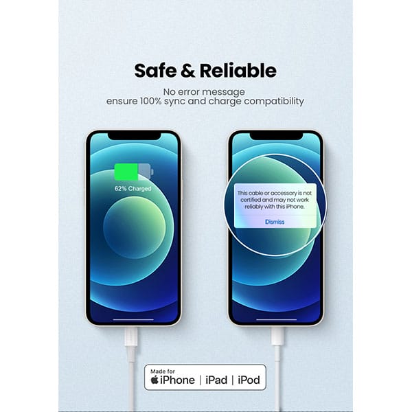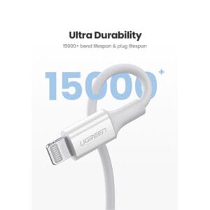 The UGREEN US171 (60749) USB-C to Lightning Cable is a premium 2-meter fast-charging and data transfer cable designed for Apple devices. With support for Power Delivery (PD) up to 20W, it ensures ultra-fast charging for iPhone and iPad while also enabling high-speed data transfer. Built with durable materials and strong connectors, this cable is ideal for everyday use, whether at home, office, or travel.