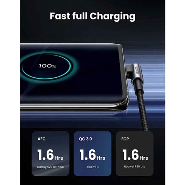 The UGREEN US284 (50941) 1M Right Angle USB-A to USB-C Cable is designed for efficient charging and stable data transfer. Its 90° angled USB-C connector provides comfortable usage in tight spaces, reduces cable strain, and enhances durability. With a 1-meter length, this cable is perfect for desk setups, gaming, or daily charging needs. The space gray color adds a modern, premium look to your accessories while maintaining reliable performance.