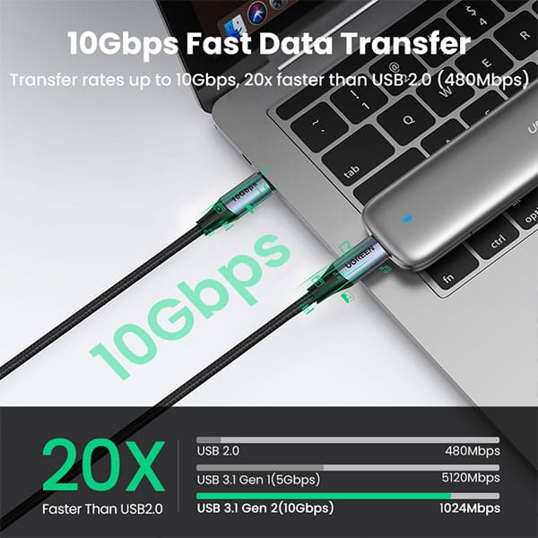 - High-Speed Data Transfer – Up to 10Gbps with USB 3.2 Gen 2