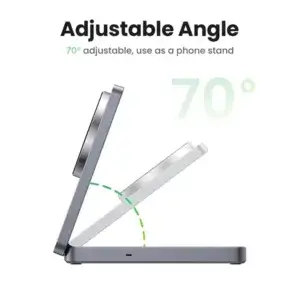 The UGREEN W706 (45023) 2-in-1 20W Magnetic Wireless Charger is designed for fast, safe, and convenient charging of your devices. With its strong magnetic alignment, it securely attaches to compatible smartphones for efficient charging without slipping. The dual charging capability lets you power your phone and another device simultaneously, making it perfect for home, office, or travel use.