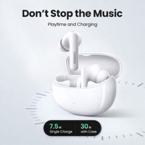 Each earbud runs for up to 7.5 hours, and you get up to 30 hours of use with the charging case. The case’s USB-C charging port supports fast charging, and the case can be fully charged in just 2 hours. In the package, you’ll find the Ugreen Bluetooth earbuds, a USB-C charging cable, ear caps in four sizes (XS, S, M, L), and a user manual. A 12-month warranty is also included for peace of mind. Whether for calls, music, or gaming, Ugreen WS206 HiTune T3 Pro earbuds offer a reliable and comfortable option for daily use.
