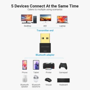 The Vention NAFB0 Bluetooth 5.0 Transmitter & Receiver Adapter is a 2-in-1 wireless audio solution designed to upgrade your everyday devices with seamless Bluetooth connectivity. Whether you’re streaming audio from your TV or computer to wireless headphones or receiving music from your smartphone to car stereos or speakers, this compact adapter gets the job done effortlessly.